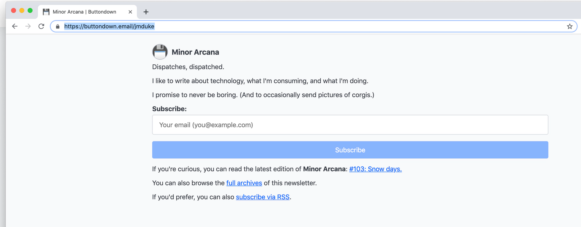 Buttondown.email is a email newsletter solution that allows you to focus on writing a great newsletter in an editor of your choice by allowing you to paste some Markdown or HTML into the tool and send it to your subscribers.