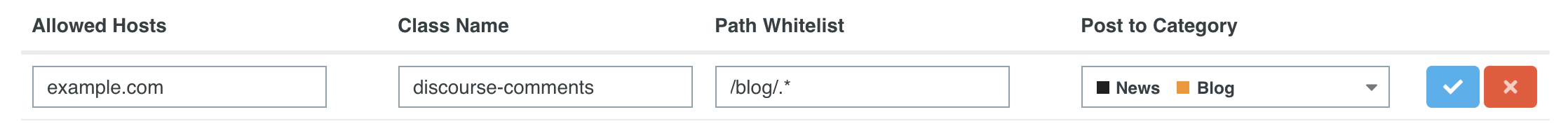 /blog/path. - Post to Category - if you supply a category alongside the host you are entering, posts imported from that host will automatically end up in that category.