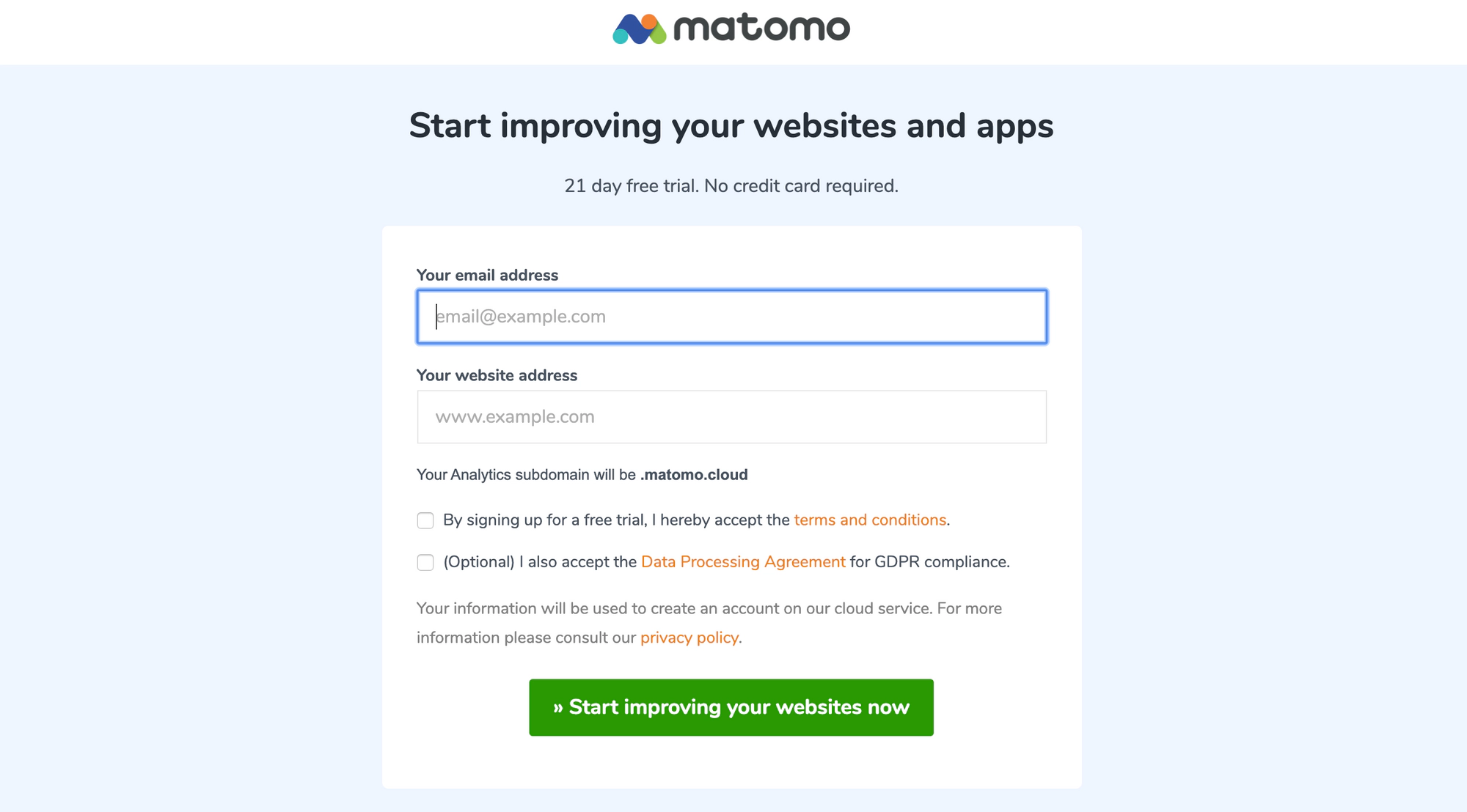 Create a Matomo cloud account