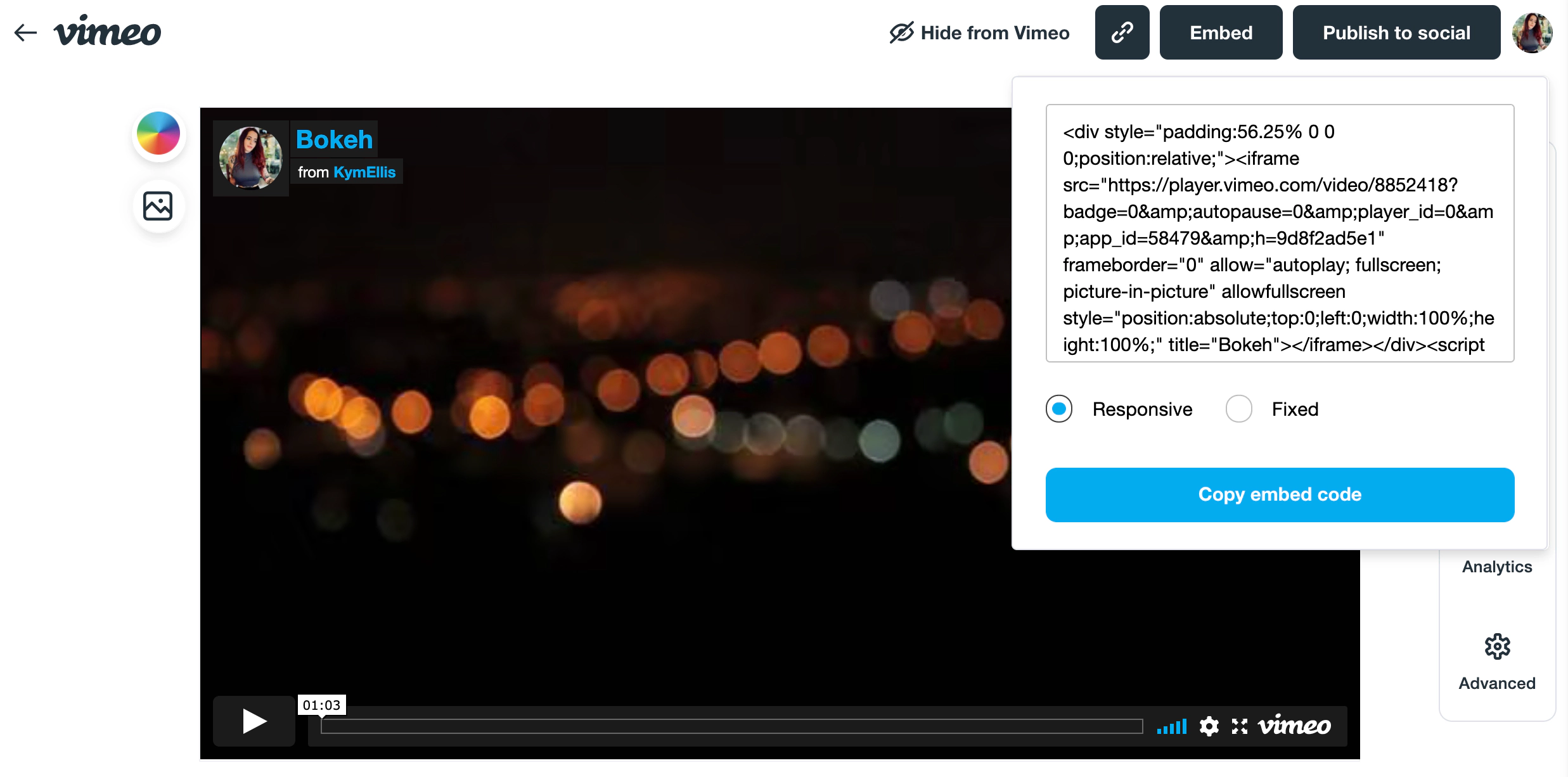 On the video you’d like to embed on a member only post, update the privacy settings by selecting Hide from Vimeo: